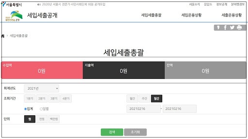 세입세출총괄은 한마디로 매일 지자체의 총수입액과 총지출액, 그리고 잔액 현황을 확인할 수 있는 메뉴다. 현재 다른 자치구들은 이 메뉴를 통해서 세입세출 내역을 살펴볼 수 있는데, 은평구의 경우 무슨 이유인지는 몰라도 얼마 전부터 검색이 제대로 되지 않아, 세입세출총괄 내역을 확인할 수 없는 상황이다.