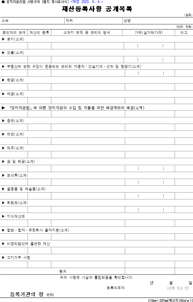• 공직자윤리법 시행규칙 별지 제10호 서식