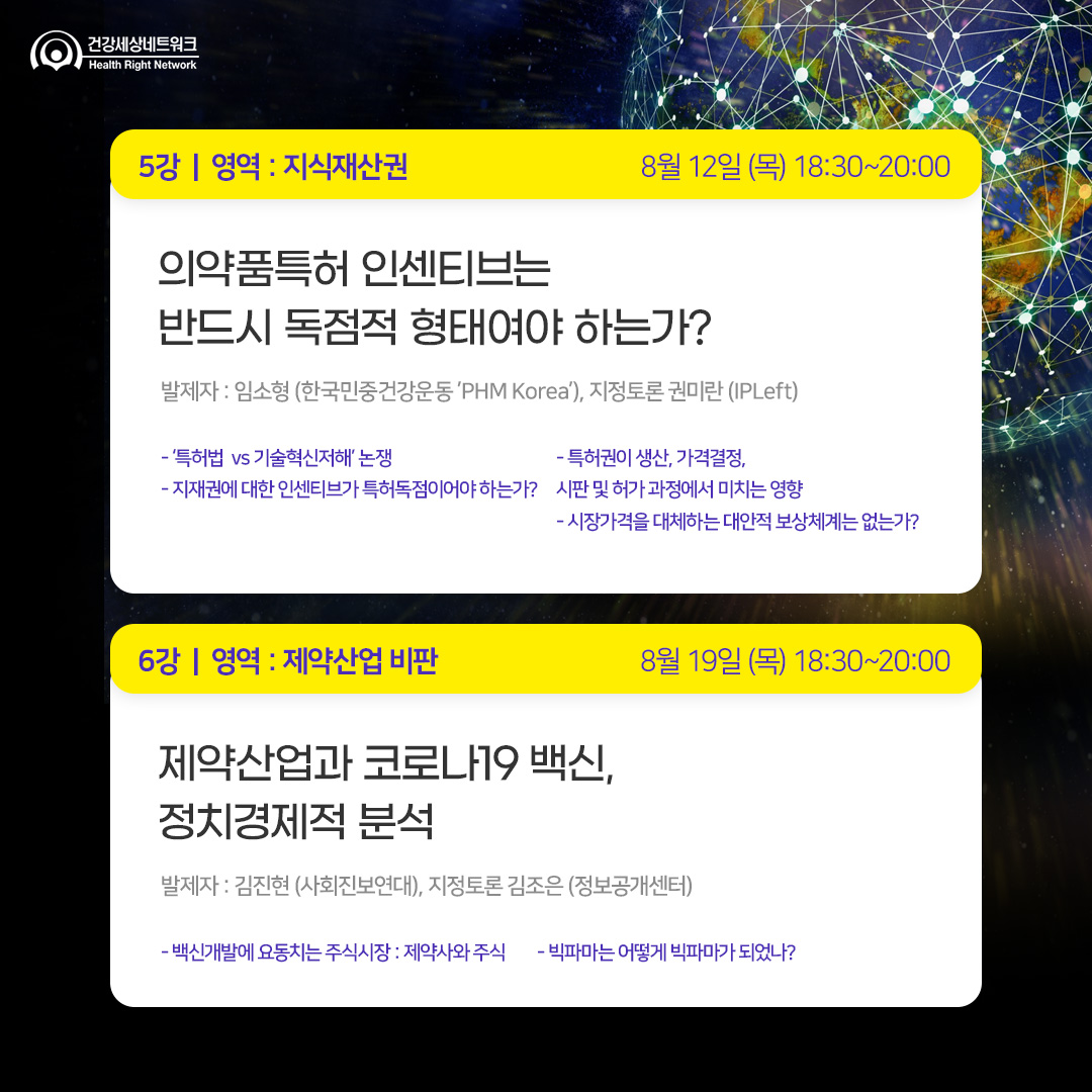 6강 | '제약산업과 코로나19백신, 정치경제적 분석' (8월 19일)