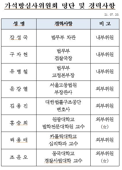 ▲ 2021년 7월 현재 가석방심사위원회 명단 ⓒ 법무부