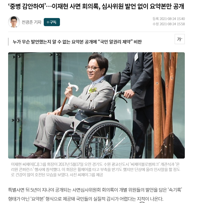 다만 한 가지 우려가 되는 점이 있습니다. 마찬가지로 5년 후부터 공개하도록 되어 있는 법무부 사면심사위원회 회의록은, 정보공개 청구가 많이 들어오자 2015년부터 회의록 공개 방식을 '속기록'이 아니라, 안건 의결 내용을 요약한 형태로 바꾼 바 있습니다. 이렇게 되면 어떤 논의를 거쳐 결정이 이뤄졌는지 제대로 살펴보기 어려워집니다. (재벌 회장 풀어준 2015년 사면심사위원회, 속기록이 사라졌다?!)