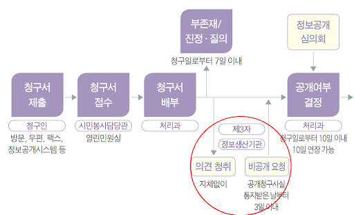 정보공개 과정 중 정보가 제3자와 연관있는 자료일 경우 의견청취를 실시 한 후 공개여부를 결정해야 한다.