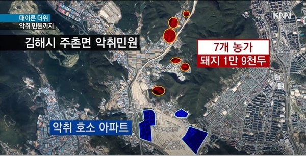 주촌선천 지구가 위치한 주촌면, 그리고 바로 위인 한림면은 70개가 넘는 돼지 축사 시설에서 12만 마리가 넘는 돼지를 사육하고 있다. 전국 돼지 사육 규모가 1200만 마리 수준인 것을 감안하면, 전국 돼지의 1%가 주촌선전 지구 인근에 몰려 있는 셈이다. 돼지 축사가 밀집한 지역 인근에 신도시가 들어섰으니, 주민들이 악취 문제로 골머리를 썩게 된 것은 필연적인 일이다. 축산 농가 인근 지역에 대규모 주거단지를 짓는데, 축산 악취 문제가 있을 것을 제대로 검토도 하지 않았다는 이유로 김해시에 대한 입주자들의 항의가 줄을 이었고, 거센 민원 폭탄을 넘어 집회까지 이어지며 지역의 대표적인 갈등 사안으로 확대되었다.