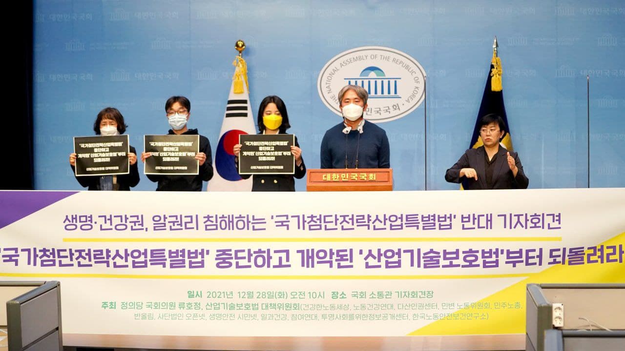 오늘(12/28) 산업기술보호법대책위원회는 정의당 류호정 국회의원과 공동으로 국회 소통관 기자회견장에서 <생명·건강권, 알권리 침해하는 국가첨단전략산업특별법 반대 기자회견>을 개최하였습니다.