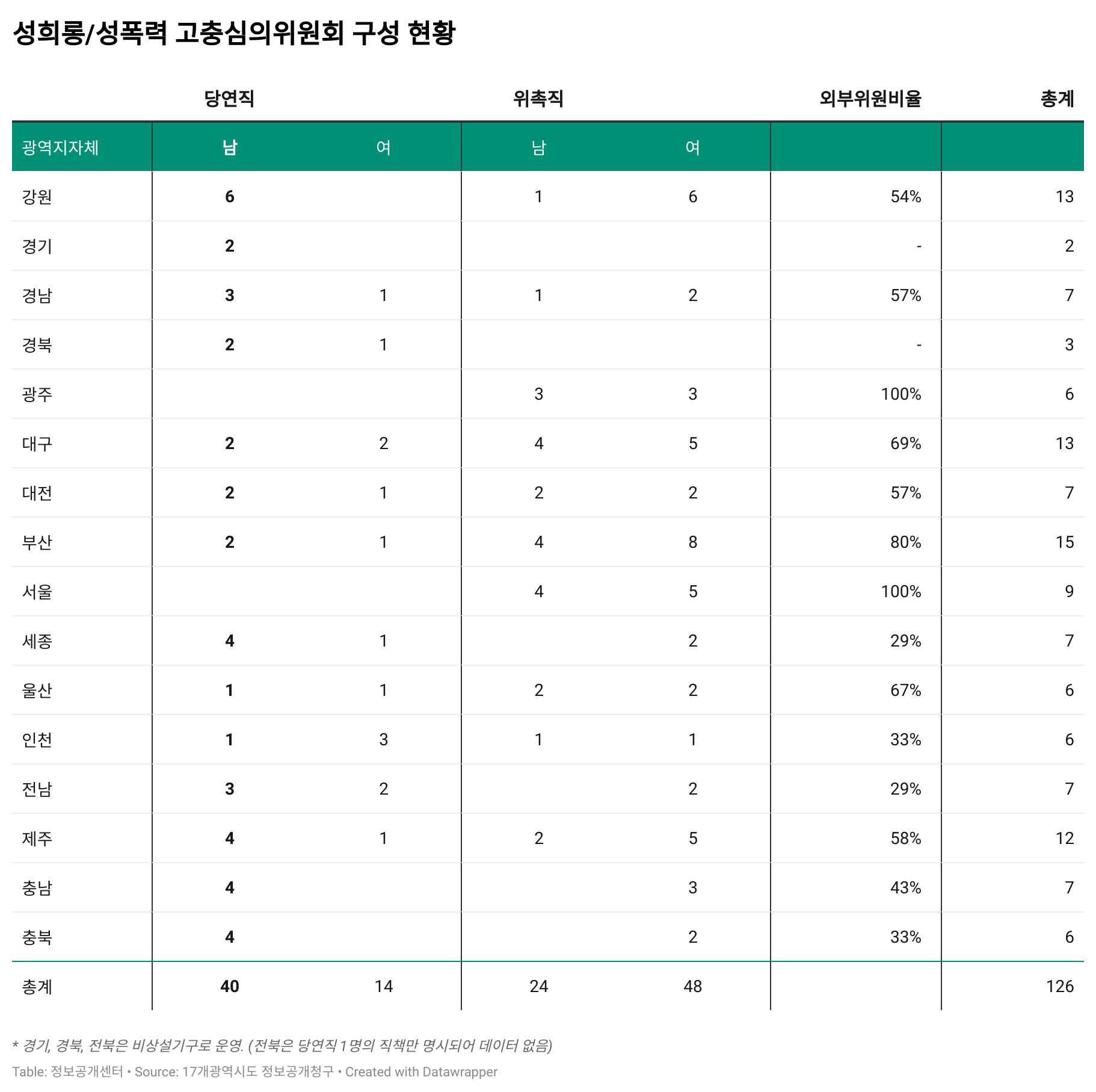 17개 광역지방자치단체 성희롱 성폭력 고충심의위원회 현황