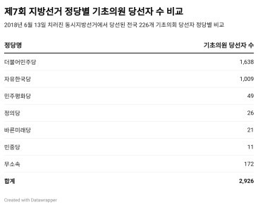 ▲ 제7회 지방선거 정당별 기초의원 당선자 수 비교 ⓒ 정보공개센터