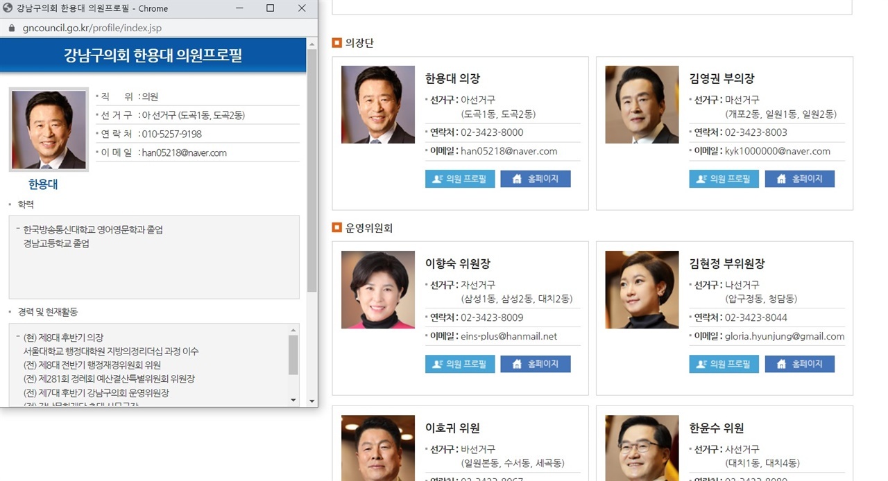 ▲ 서울 강남구의회 의원 소개 페이지 ⓒ 정보공개센터
