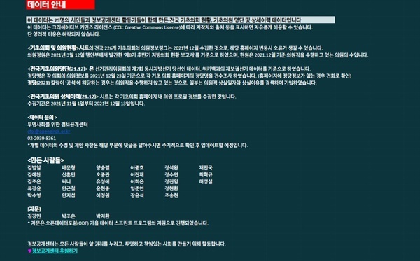 전국 226개 기초의회, 2900명이 넘는 기초의원들의 정보를 수집하고, 정제하는 과정에는 정보공개센터 활동가들 뿐 아니라 스물 다섯 명의 시민들이 자원하여 함께해주셨습니다. 다른 시민들을 위해 발 벗고 나서서 어려운 작업을 함께 해주신 참여자 분들께 감사드립니다.