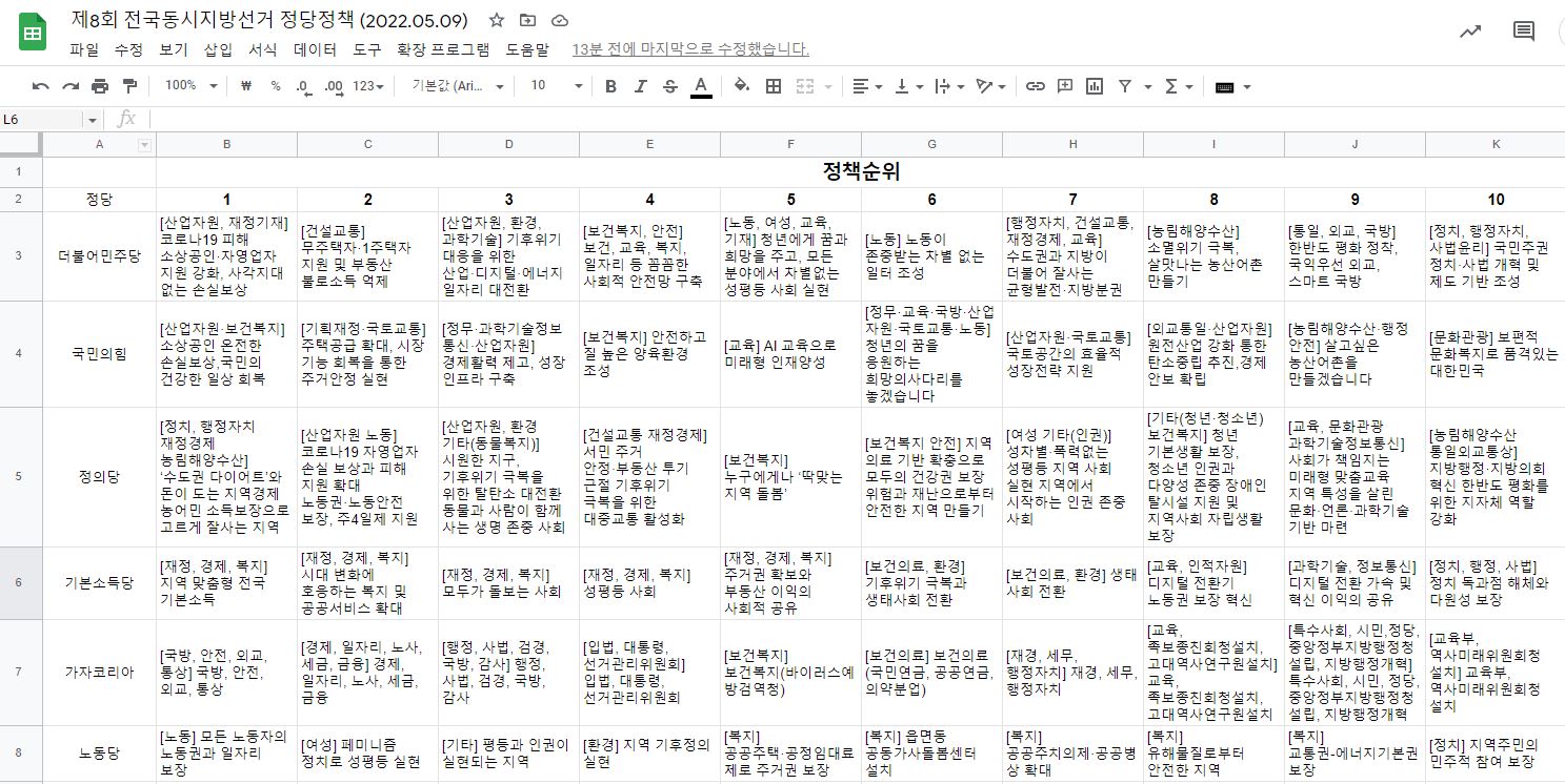 ▶제8회 전국동시지방선거 정당정책 (2022.05.09) 시트로 보기