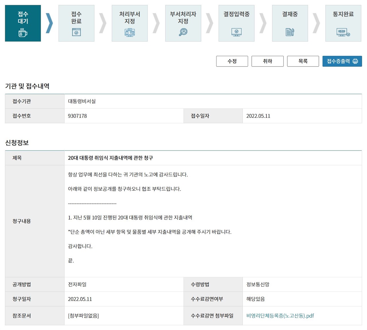 첫 정보공개청구, 대통령실의 반응