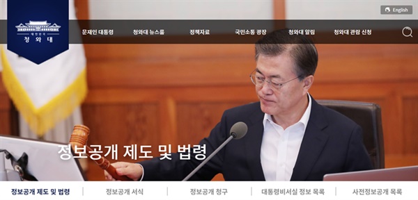 문제는 이뿐만이 아니다. 대통령실을 포함한 공공기관의 홈페이지에는 정보공개 관련 메뉴가 접속자들이 쉽게 찾을 수 있는 곳에 배치된다. 이곳에서 시민들은 정보공개제도 안내는 물론이고 공공기관들이 자발적으로 공개하고 있는 주요 '사전공표 정보'를 직접 다운받거나 확인할 수 있고 정보공개청구도 바로 진행할 수 있다.