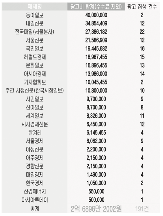 모든 정부기관과 공공법인은 정부광고법에 따라 국내외 홍보 매체에 광고를 할 때 한국언론진흥재단을 거쳐야 합니다. 한마디로 광고주인 공공기관과 언론매체를 연결하면서, 언론매체에 관한 자료들을 제공하고 컨설팅하는 역할을 맡는 것인데요, 따라서 한국언론진흥재단은 전국 공공기관의 광고 내역을 보유하고 있는 것입니다.