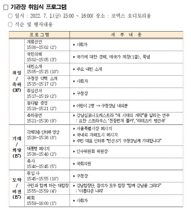 민선8기 서울시 25개 구청장 취임식 개요 및 예산