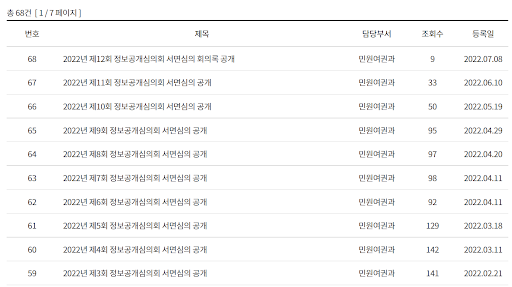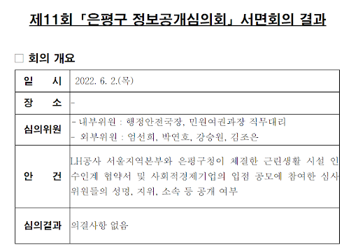 지난 6월 2일 열린 2022년 제11회 은평구 정보공개심의회 회의 결과를 볼까요?