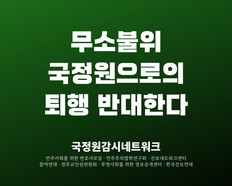 한편, 국정원이 ‘경제협력단’을 설치해 활동을 개시했다는 사실을 언론이 보도했다. 보도에 인용된 ‘사정당국 관계자’는 “경제방첩을 넘어 국익 수호를 하려는 것”이라며 “기업 투자 유치나 총수 동향 감시가 아니라 국익과 관련된 경제 현안을 컨설팅하는 역할인 것으로 안다”고 말했다고 한다. 국정원법의 직무 범위 중 어떤 조항에 근거해 만들어진 조직과 활동인지 제대로 밝히지도 못하면서 “국익”으로 뭉뚱그리고 있다. 국정원법 제4조에 명시된 직무 중 “산업경제정보 유출, 해외연계 경제질서 교란 및 방위산업침해”를 포함한 방첩 업무도 일상적인 국내 정보 수집의 근거가 될 수 없다. 게다가 신설한 ‘경제협력단’과 해외 기술유출 행위 등을 감시하기 위해 운영 중이라는 ‘경제방첩단’의 업무가 어떻게 구분되는지 국정원 스스로 명확히 설명할 수는 있는가. 2020년 12월에 개정된 국정원법에서 ‘다른 국가기관과 정당, 언론사 등의 민간을 대상으로 한 파견ㆍ상시출입 등 방법을 통한 정보활동’을 금지한 조항이 빠지면서 논란이 된 바 있다. 국정원은 역시 틈새를 놓치지 않았다. 국내 정보 수집 우려가 큰 ‘경제협력단’ 신설은 자의적 법 해석으로 함부로 직무 범위를 넓혀 불법행위를 일삼던 과거가 되풀이될 수 있음을 여실히 보여준다. 문재인 정부에서 미완에 그친 국정원 개혁의 반동이 아닐 수 없다.
