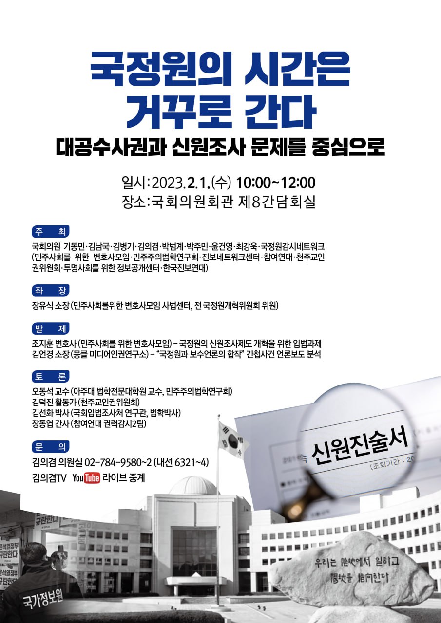 | [성명] 윤 대통령은 '대공수사권 이관 재검토' 철회하라 (1) | 2023.01.27 |