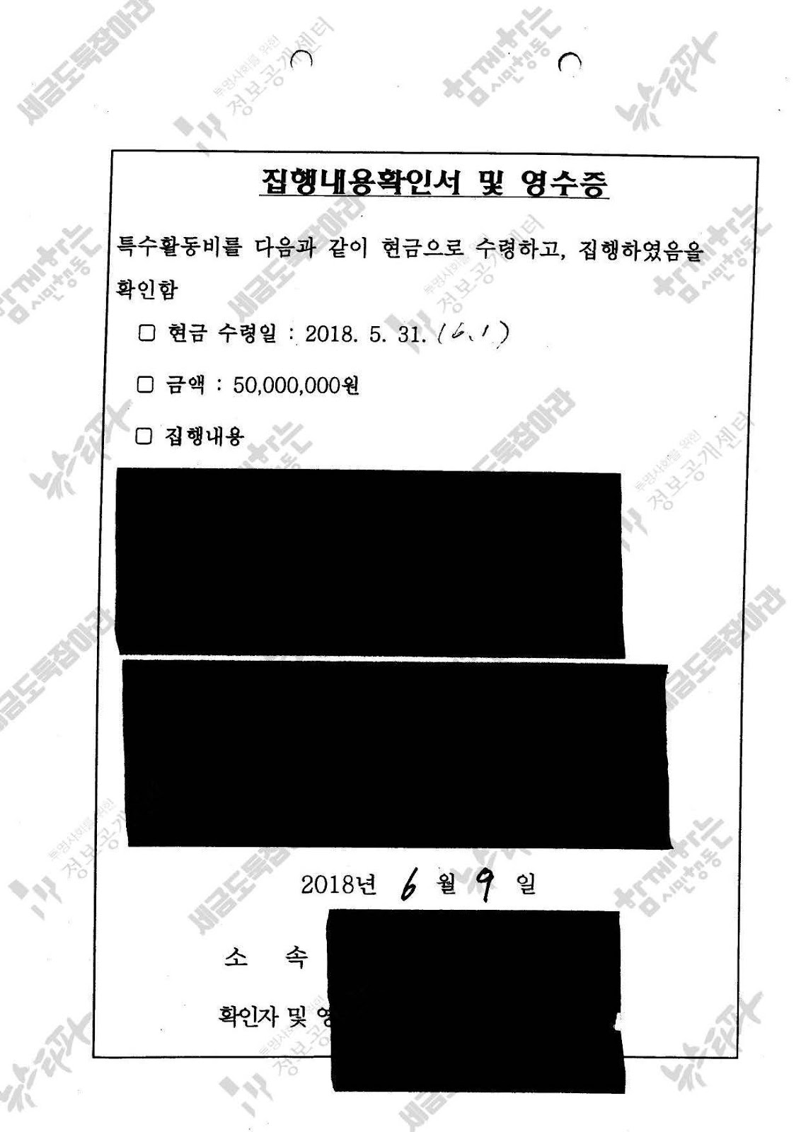 - 연말에 몰아쓴 ‘13월의 특수활동비 4억’, 1억 5천만 원짜리 현금수령증 등 ‘흥청망청’ 집행 실태