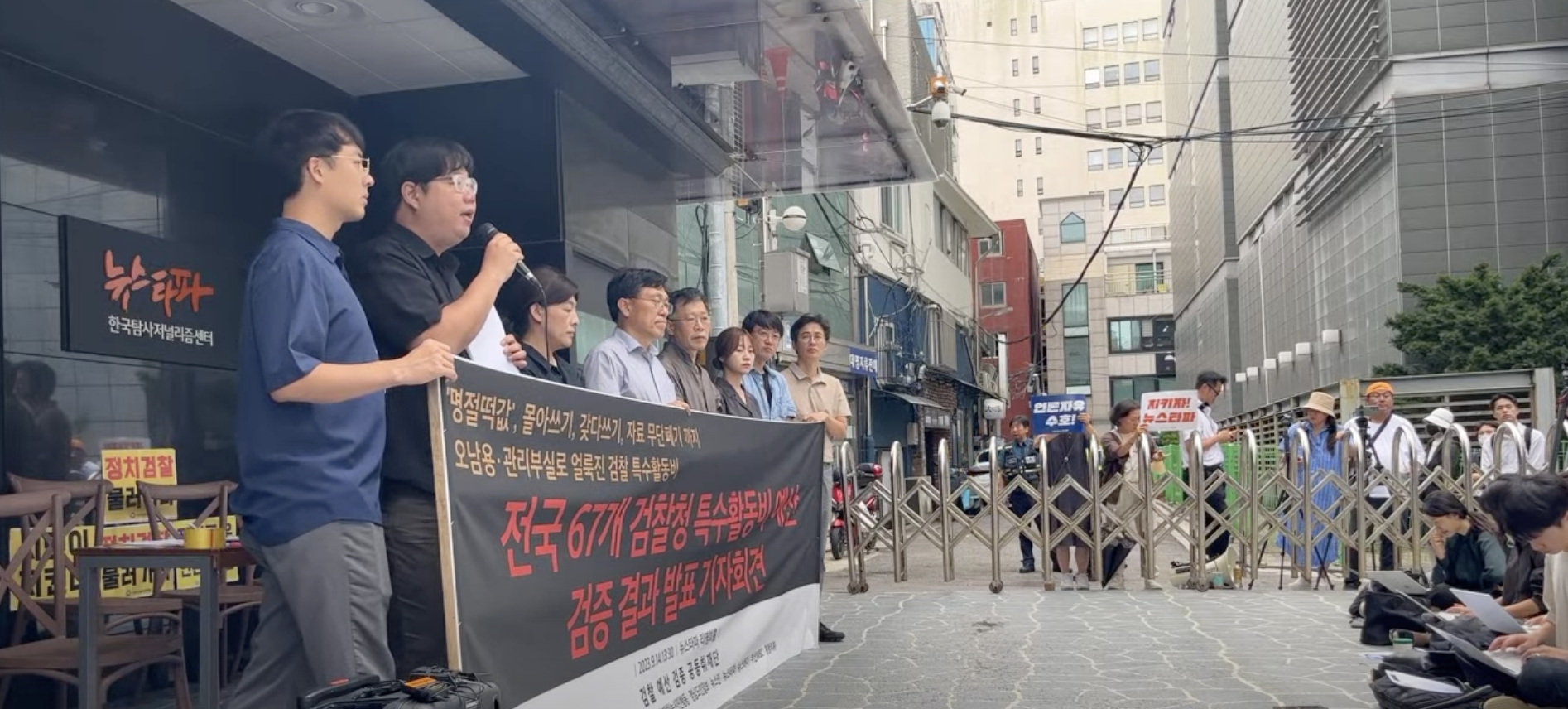 - 2023년 9월 14일(목) 오후 1시 30분, 서울 충무로 뉴스타파함께센터 지하 1층 리영희 홀에서 ‘검찰예산 검증 공동취재단’(세금도둑잡아라, 투명사회를 위한 정보공개센터, 함께하는 시민행동, 뉴스타파, 경남도민일보, 뉴스민, 뉴스하다, 충청리뷰, 부산MBC)은 전국 67개 고검, 지검, 지청에서 사용한 특수활동비에 대한 검증 결과를 발표했다.