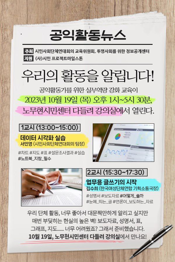 <공익활동가 실무역량 강화 교육 : 우리의 활동을 알립니다>